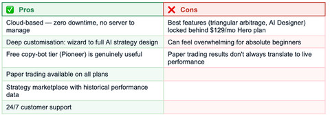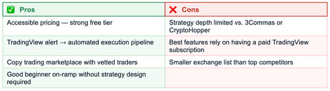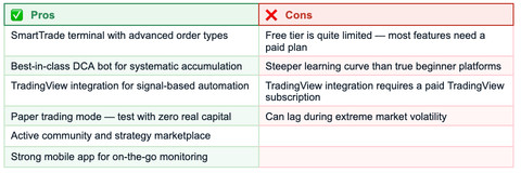 3Commas is less ideal for users who want the simplest possible onboarding. It asks for more involvement, and its value becomes clearer when the user is willing to engage with strategy settings and platform tools.