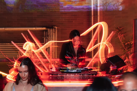 Upstairs at WAV, the rooftop drew a different crowd. DJs Anil Ahuja and Mia delivered a steady build while immersive visuals from more than 40 global artists washed across the space. Guests drifted toward the edges to take in the skyline and the art.